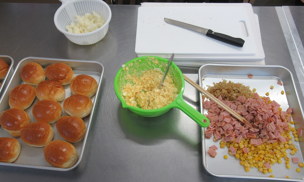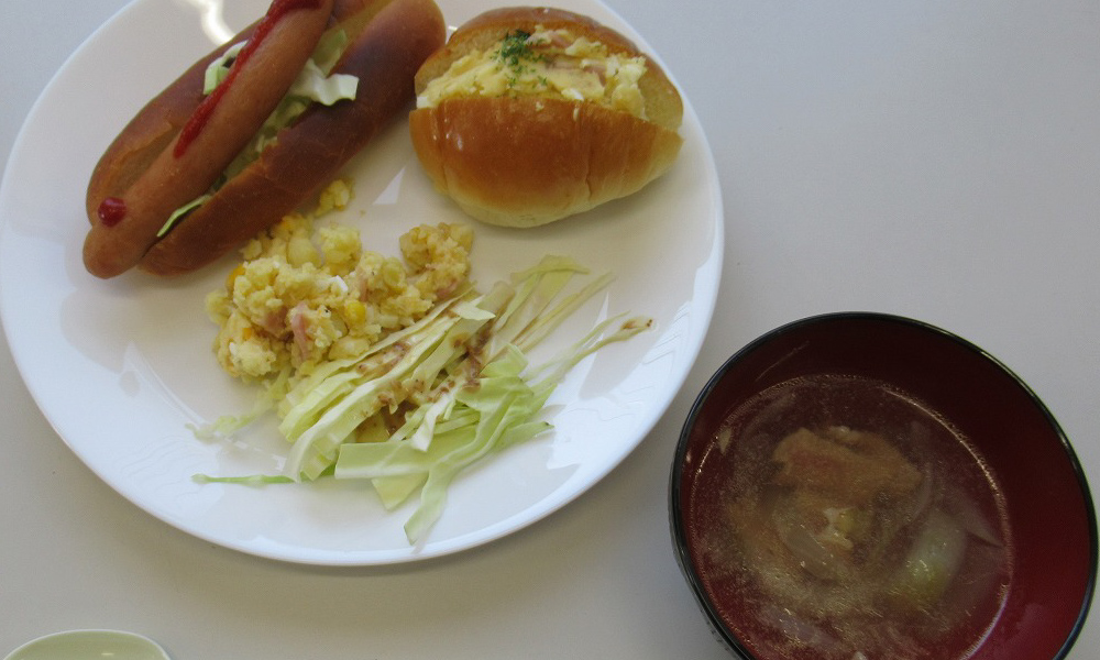 今回のメニューはホットドッグ・ポテサラドッグ・コンソメスープ。